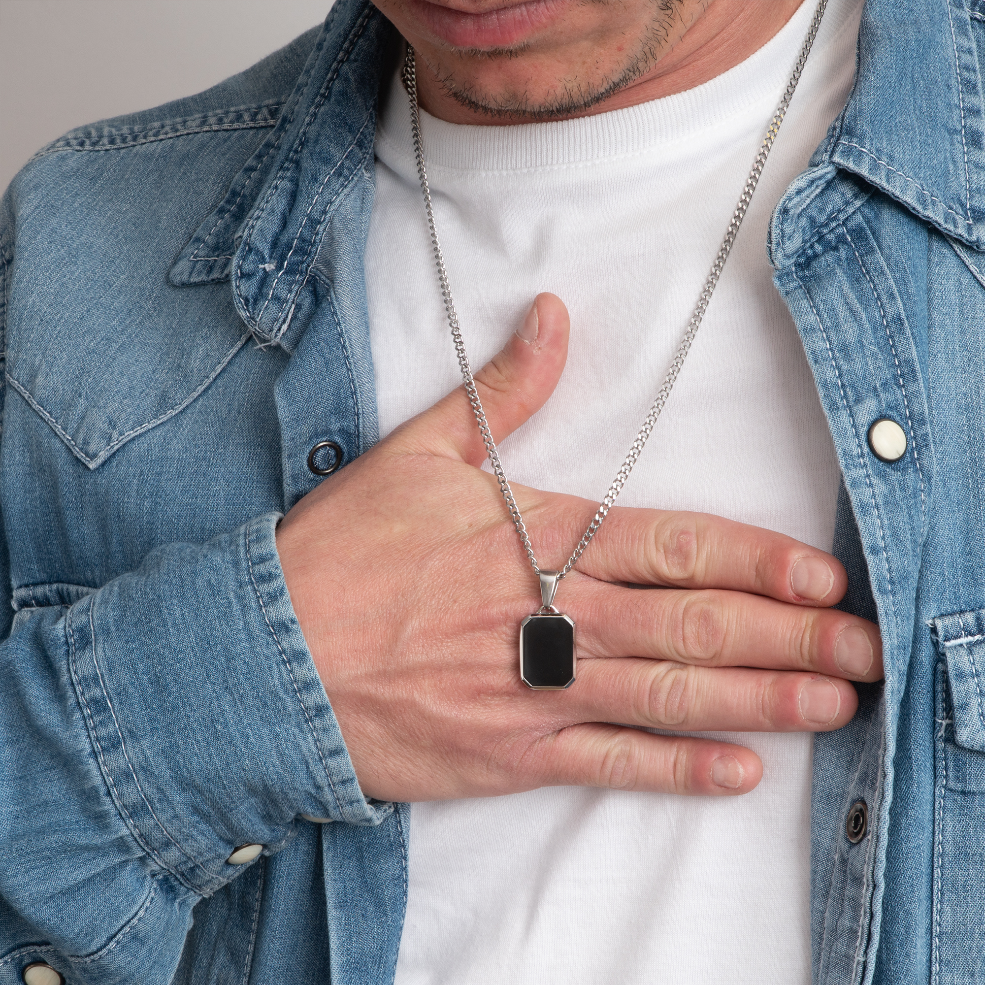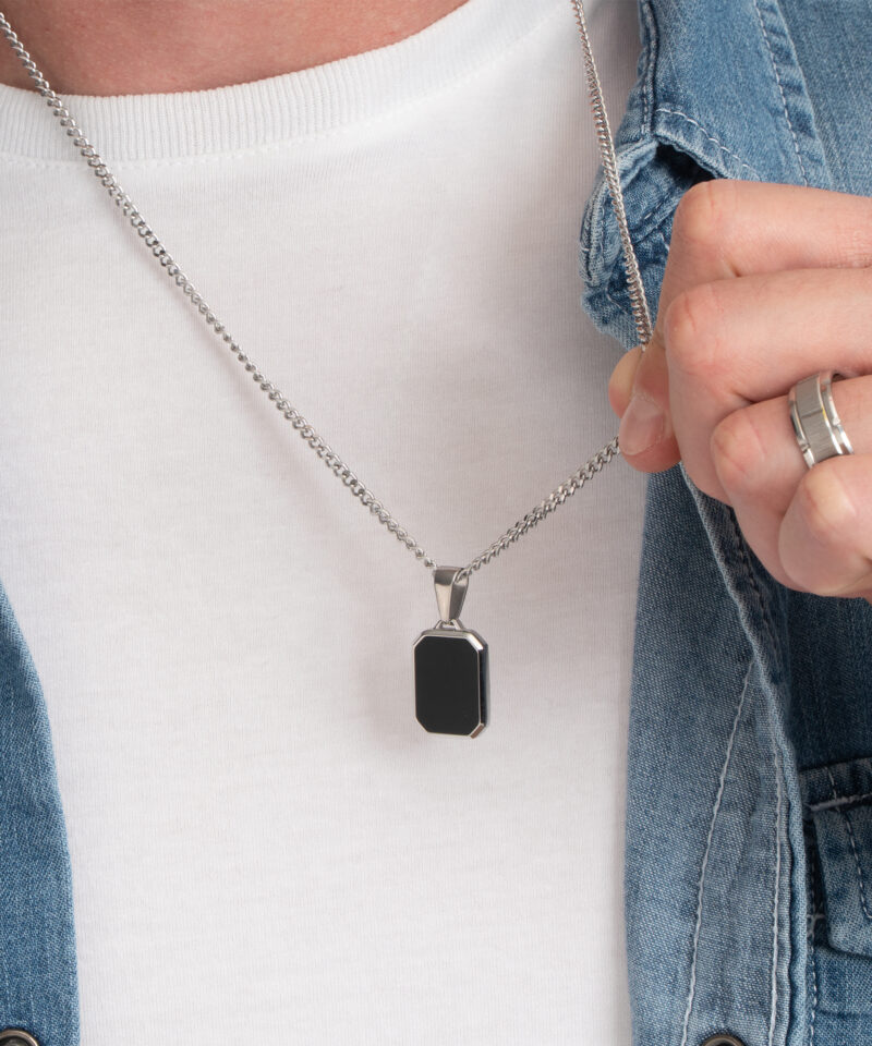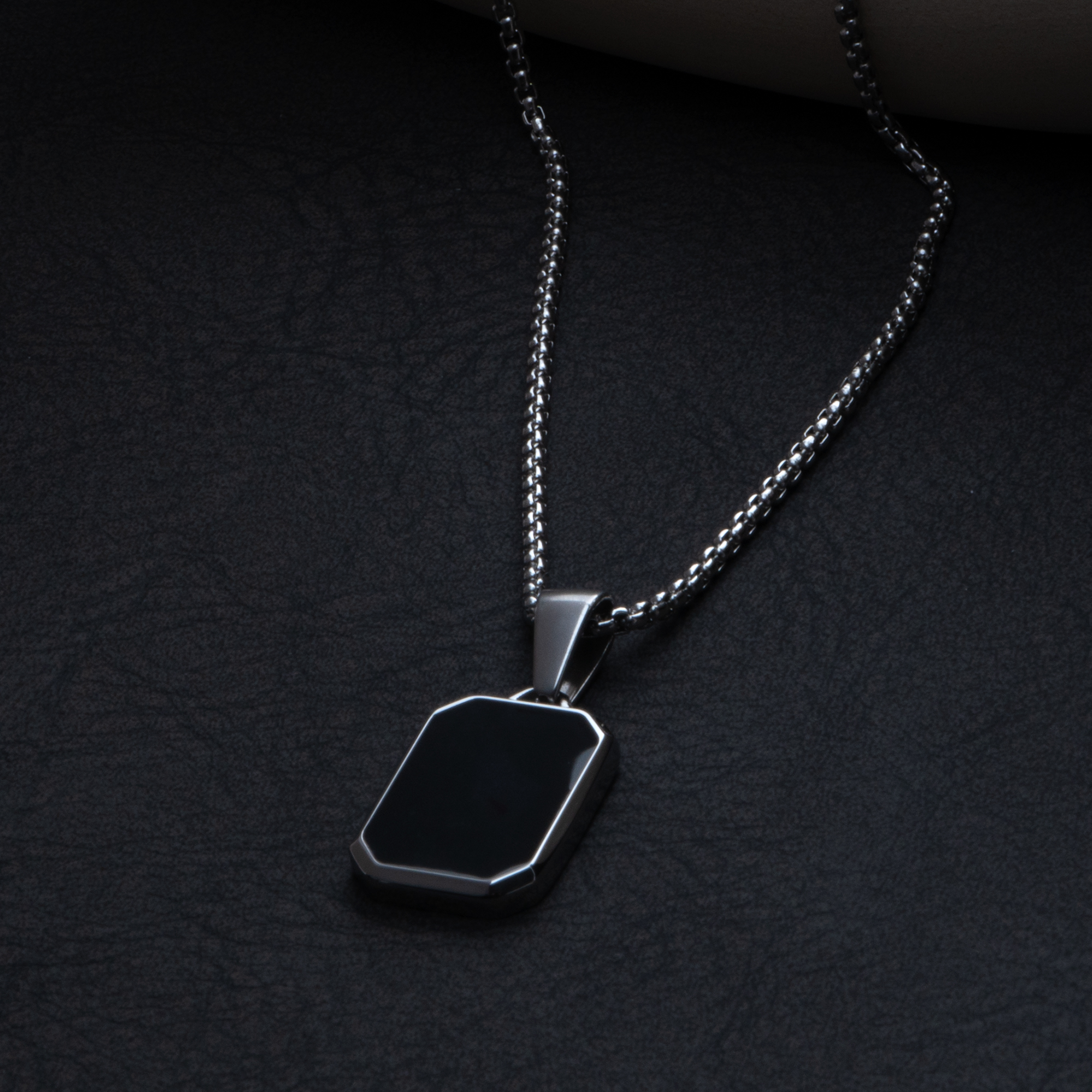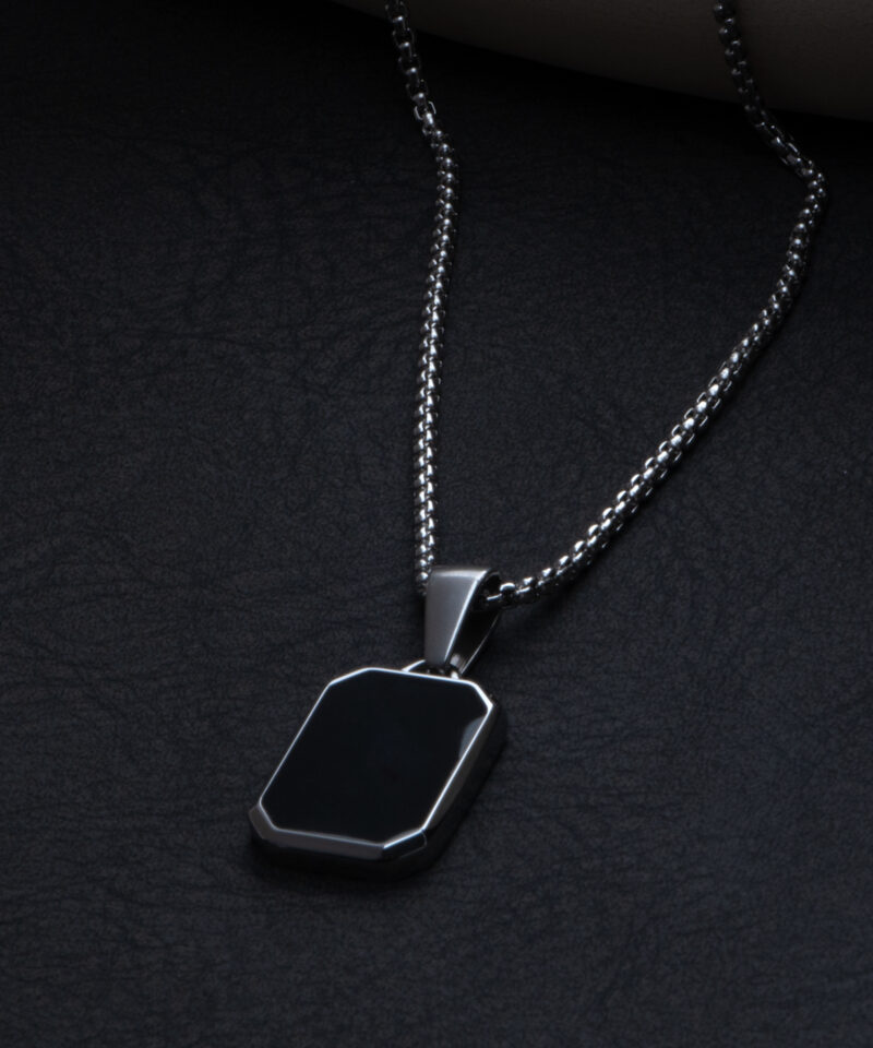 השילוב בין פלדת האל חלד העמידה לבין גימור האמייל השחור מבטיח שהשרשרת תישאר יפה, חזקה ונוצצת לאורך זמן.