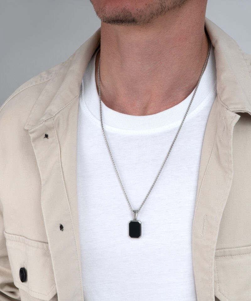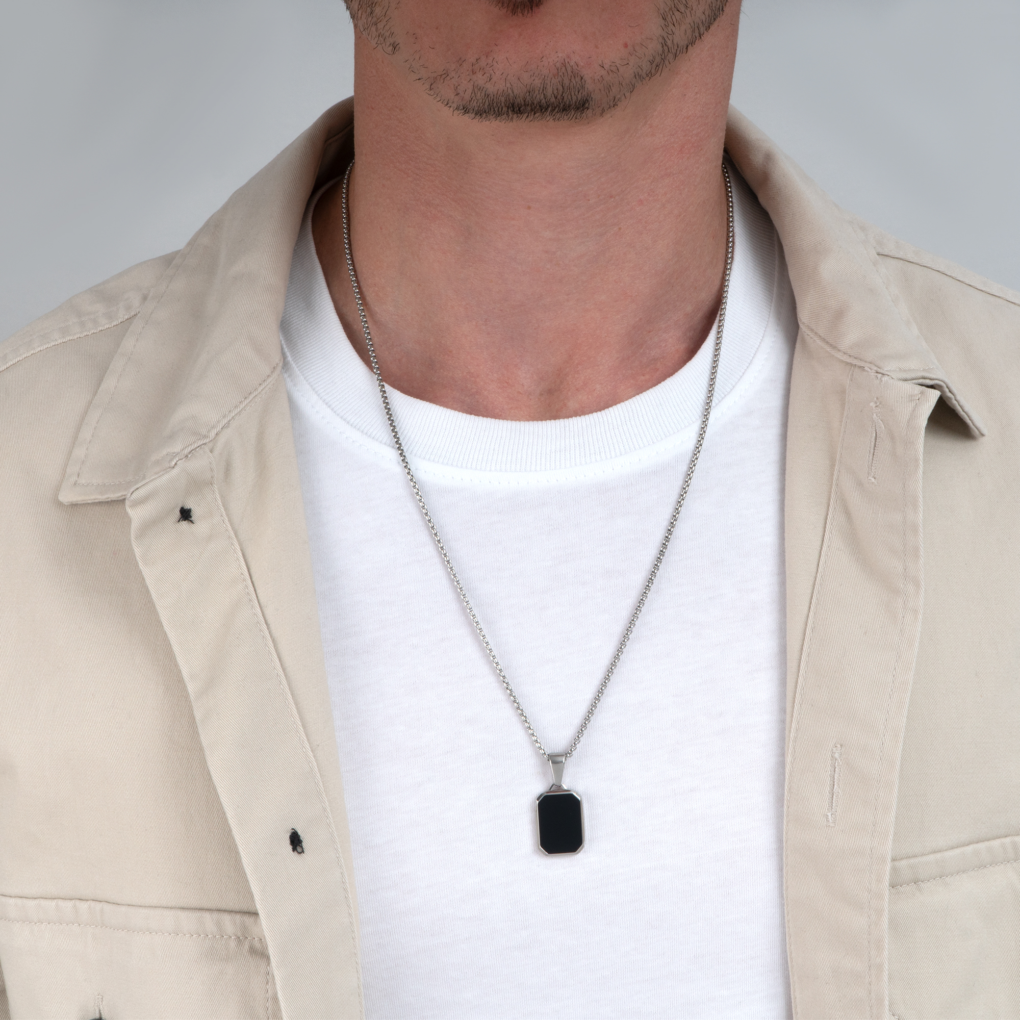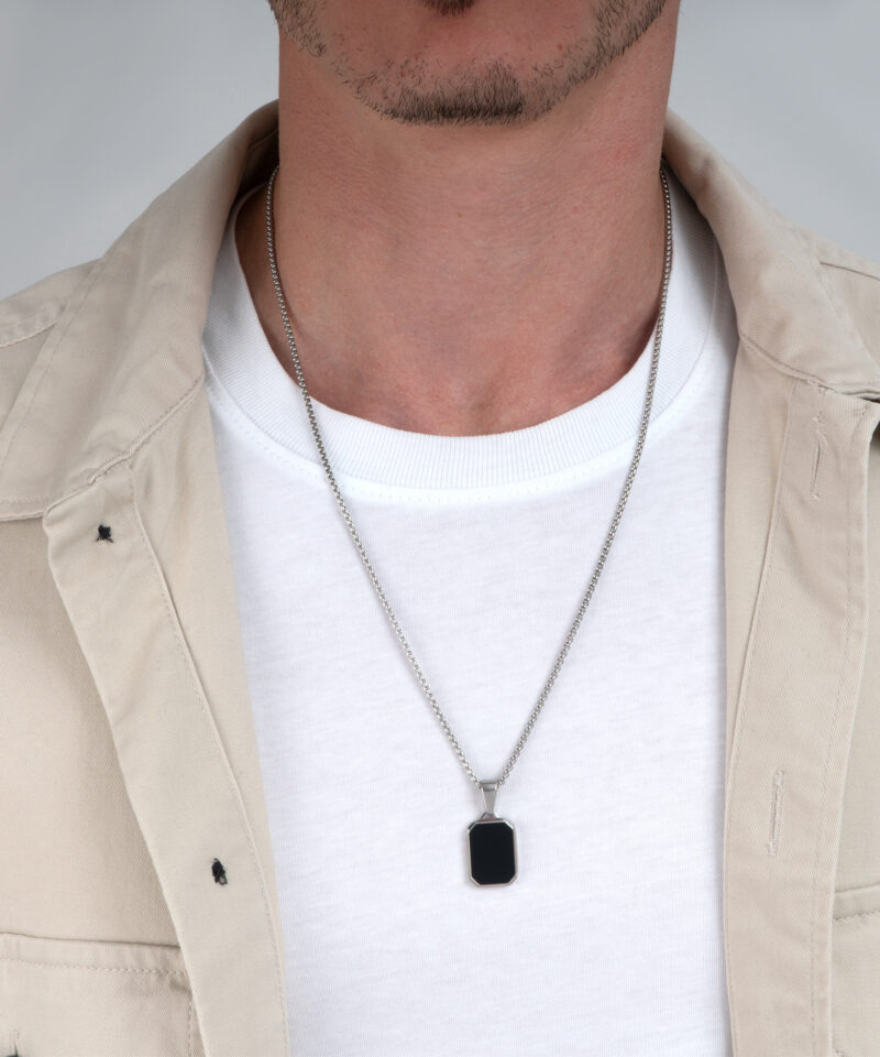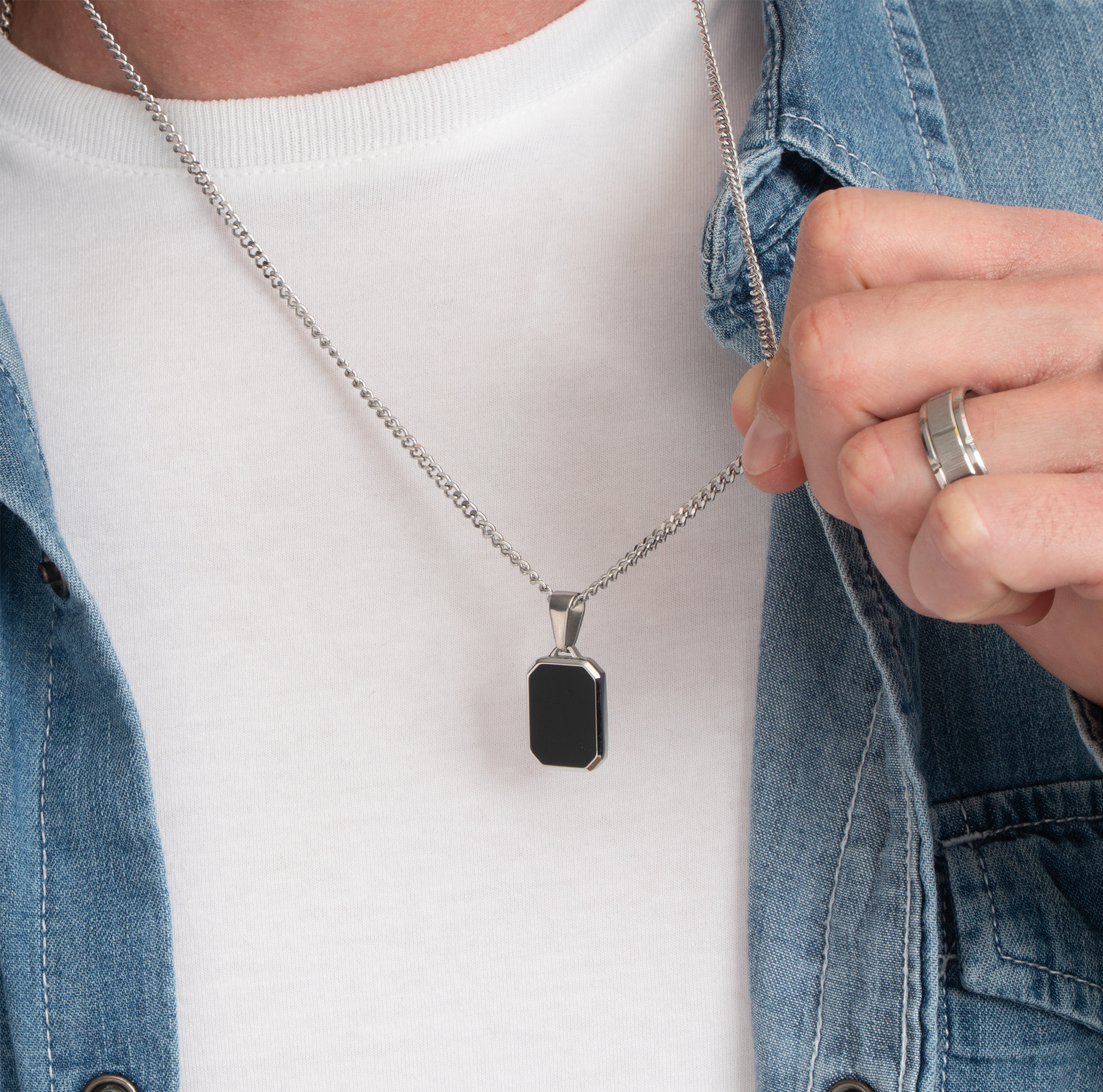 השילוב בין פלדת האל חלד העמידה לבין גימור האמייל השחור מבטיח שהשרשרת תישאר יפה, חזקה ונוצצת לאורך זמן.